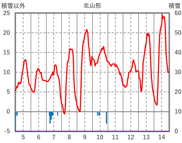 | 日 | 時 | 気温 | 降水 | 風向/風速 | 日照 | 積雪 | 降雪 |