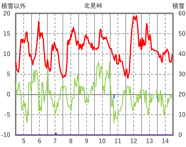 | 日 | 時 | 気温 | 降水 | 風向/風速 | 日照 | 積雪 | 降雪 |