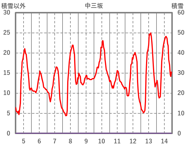 | 日 | 時 | 気温 | 降水 | 風向/風速 | 日照 | 積雪 | 降雪 |