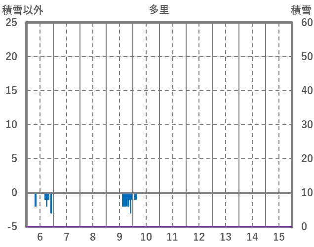 | 日 | 時 | 気温 | 降水 | 風向/風速 | 日照 | 積雪 | 降雪 |