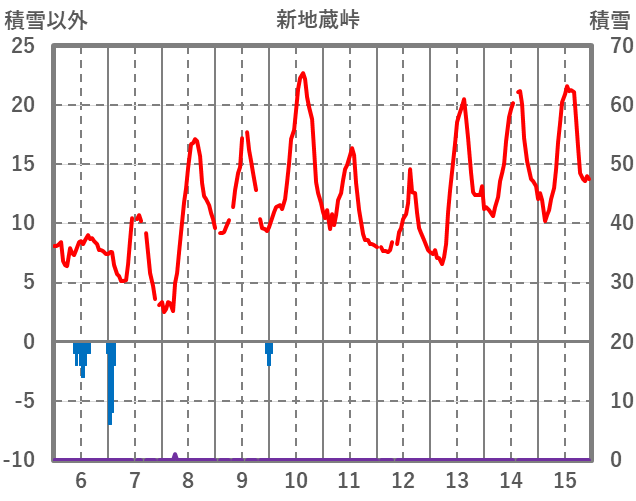 | 日 | 時 | 気温 | 降水 | 風向/風速 | 日照 | 積雪 | 降雪 |