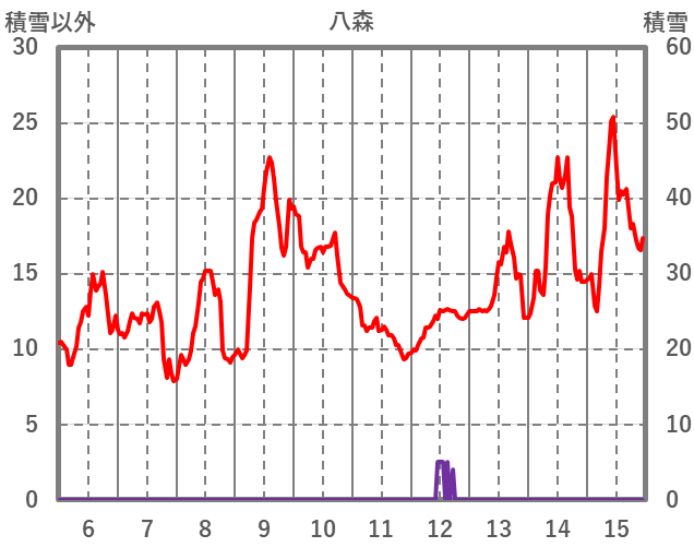 | 日 | 時 | 気温 | 降水 | 風向/風速 | 日照 | 積雪 | 降雪 |