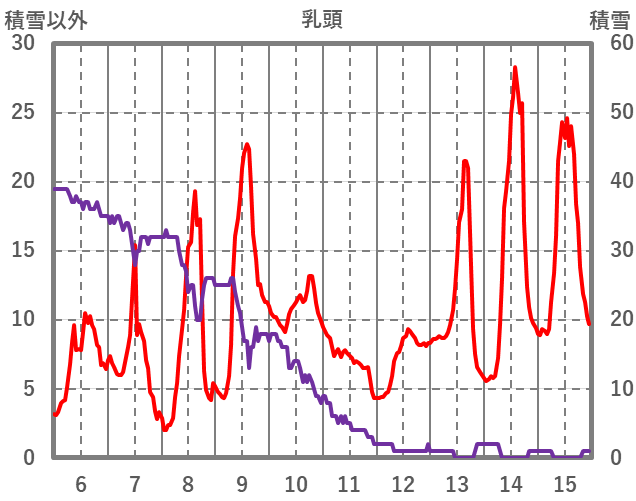 | 日 | 時 | 気温 | 降水 | 風向/風速 | 日照 | 積雪 | 降雪 |