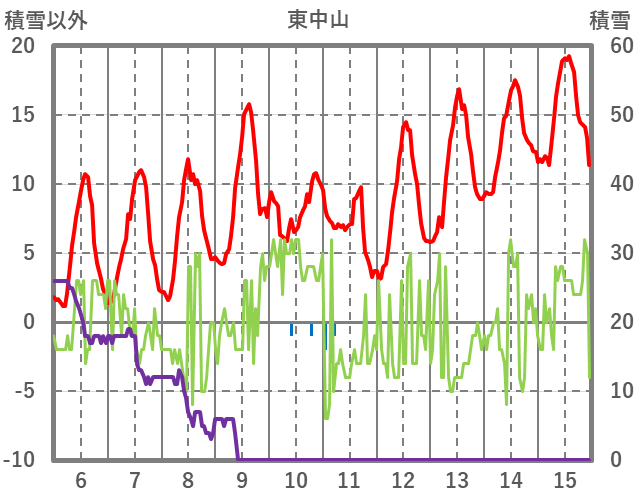 | 日 | 時 | 気温 | 降水 | 風向/風速 | 日照 | 積雪 | 降雪 |