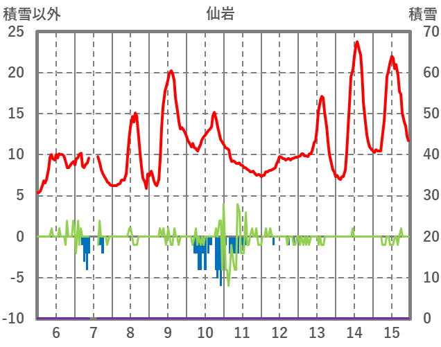 | 日 | 時 | 気温 | 降水 | 風向/風速 | 日照 | 積雪 | 降雪 |