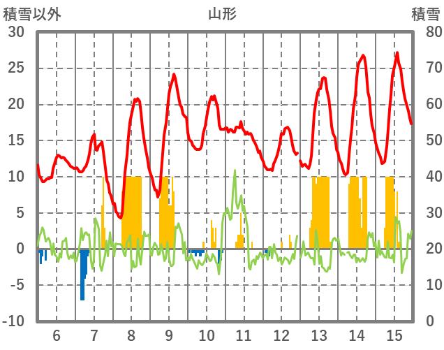 | 日 | 時 | 気温 | 降水 | 風向/風速 | 日照 | 積雪 | 降雪 |