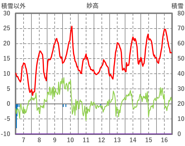 | 日 | 時 | 気温 | 降水 | 風向/風速 | 日照 | 積雪 | 降雪 |