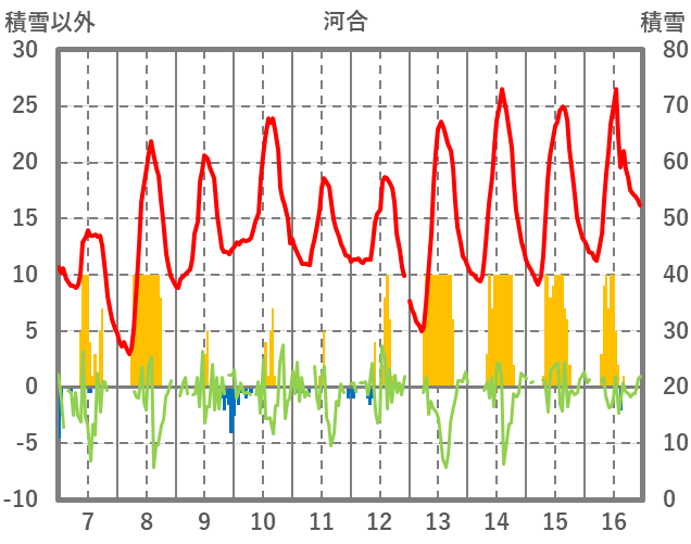 | 日 | 時 | 気温 | 降水 | 風向/風速 | 日照 | 積雪 | 降雪 |