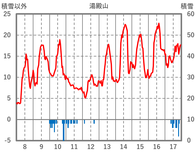 | 日 | 時 | 気温 | 降水 | 風向/風速 | 日照 | 積雪 | 降雪 |