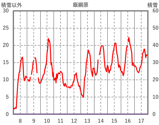 | 日 | 時 | 気温 | 降水 | 風向/風速 | 日照 | 積雪 | 降雪 |