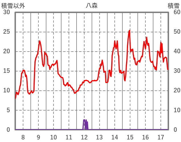 | 日 | 時 | 気温 | 降水 | 風向/風速 | 日照 | 積雪 | 降雪 |