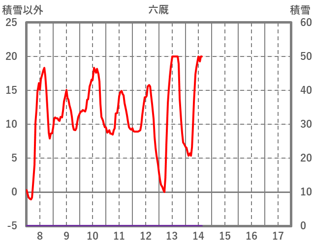 | 日 | 時 | 気温 | 降水 | 風向/風速 | 日照 | 積雪 | 降雪 |