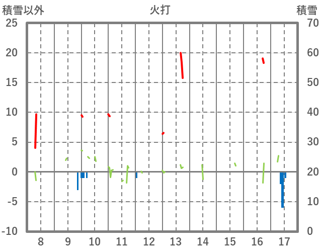 | 日 | 時 | 気温 | 降水 | 風向/風速 | 日照 | 積雪 | 降雪 |