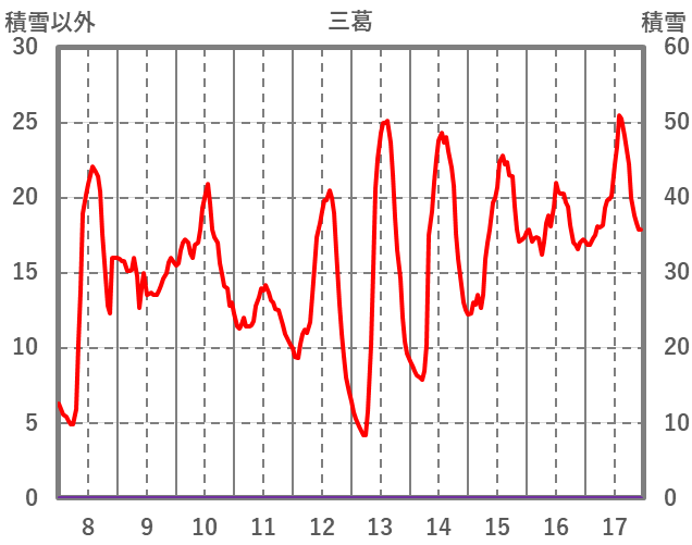 | 日 | 時 | 気温 | 降水 | 風向/風速 | 日照 | 積雪 | 降雪 |