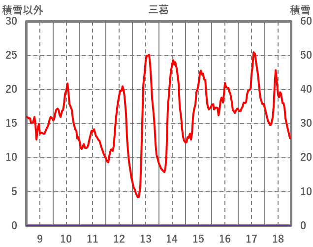 | 日 | 時 | 気温 | 降水 | 風向/風速 | 日照 | 積雪 | 降雪 |