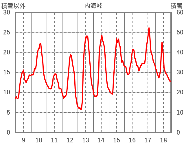 | 日 | 時 | 気温 | 降水 | 風向/風速 | 日照 | 積雪 | 降雪 |