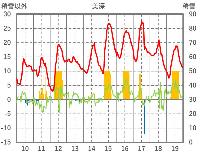 | 日 | 時 | 気温 | 降水 | 風向/風速 | 日照 | 積雪 | 降雪 |
