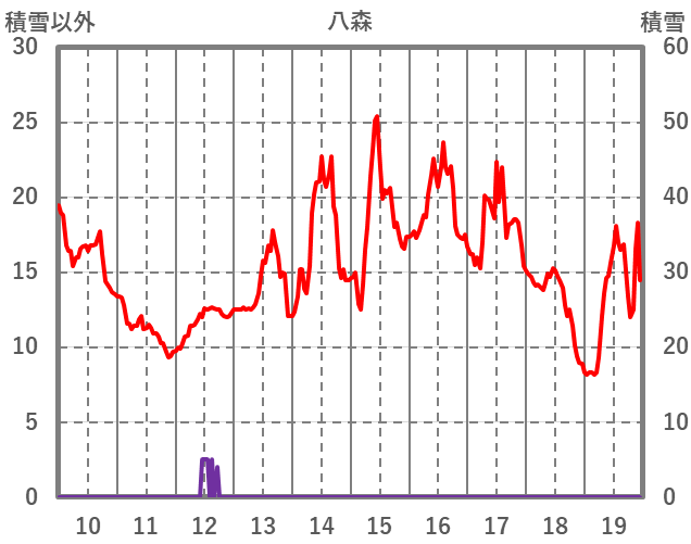 | 日 | 時 | 気温 | 降水 | 風向/風速 | 日照 | 積雪 | 降雪 |