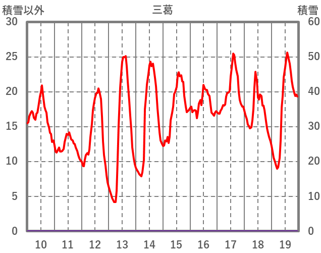 | 日 | 時 | 気温 | 降水 | 風向/風速 | 日照 | 積雪 | 降雪 |