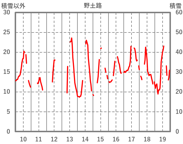 | 日 | 時 | 気温 | 降水 | 風向/風速 | 日照 | 積雪 | 降雪 |
