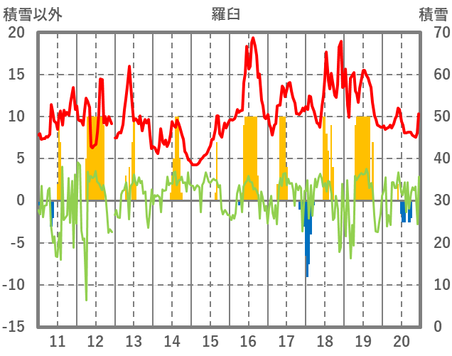 | 日 | 時 | 気温 | 降水 | 風向/風速 | 日照 | 積雪 | 降雪 |