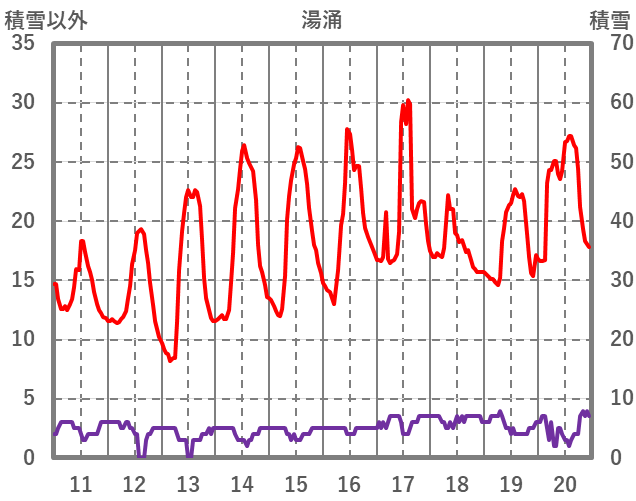 | 日 | 時 | 気温 | 降水 | 風向/風速 | 日照 | 積雪 | 降雪 |