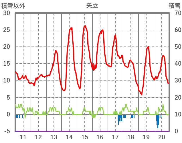 | 日 | 時 | 気温 | 降水 | 風向/風速 | 日照 | 積雪 | 降雪 |