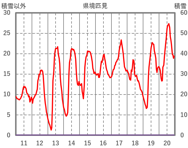 | 日 | 時 | 気温 | 降水 | 風向/風速 | 日照 | 積雪 | 降雪 |