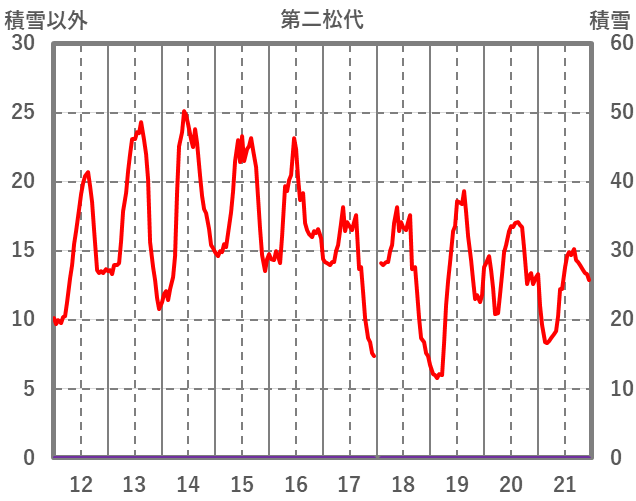 | 日 | 時 | 気温 | 降水 | 風向/風速 | 日照 | 積雪 | 降雪 |