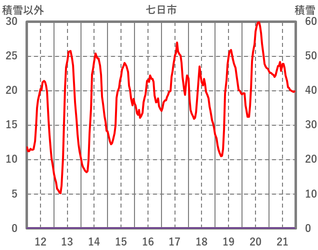 | 日 | 時 | 気温 | 降水 | 風向/風速 | 日照 | 積雪 | 降雪 |