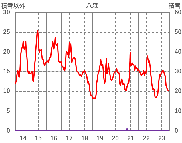 | 日 | 時 | 気温 | 降水 | 風向/風速 | 日照 | 積雪 | 降雪 |