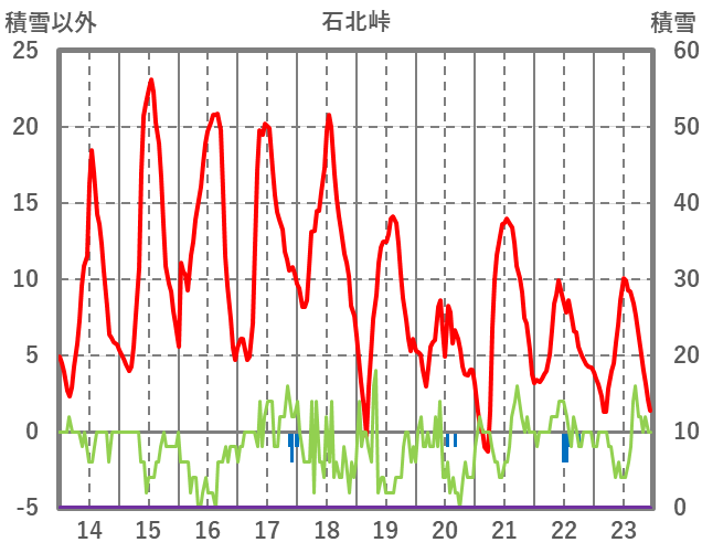 | 日 | 時 | 気温 | 降水 | 風向/風速 | 日照 | 積雪 | 降雪 |