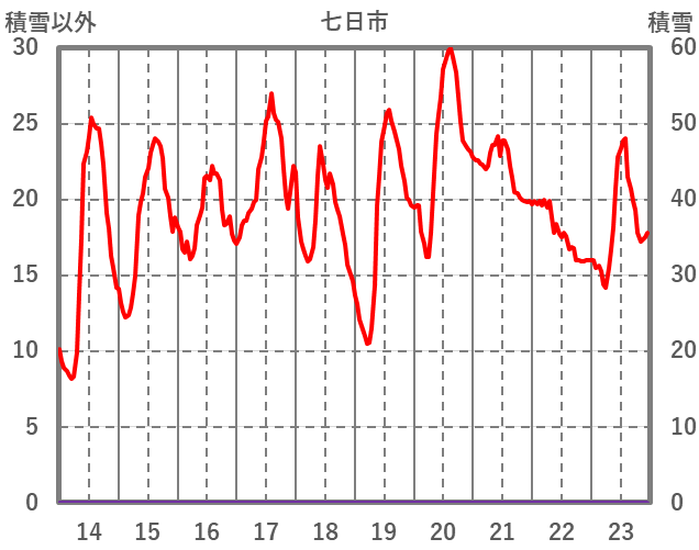 | 日 | 時 | 気温 | 降水 | 風向/風速 | 日照 | 積雪 | 降雪 |