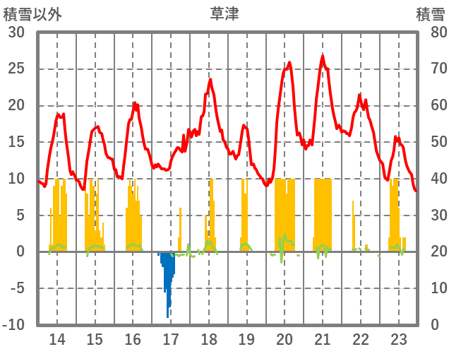 | 日 | 時 | 気温 | 降水 | 風向/風速 | 日照 | 積雪 | 降雪 |