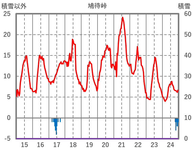 | 日 | 時 | 気温 | 降水 | 風向/風速 | 日照 | 積雪 | 降雪 |