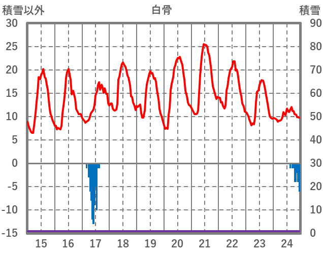 | 日 | 時 | 気温 | 降水 | 風向/風速 | 日照 | 積雪 | 降雪 |