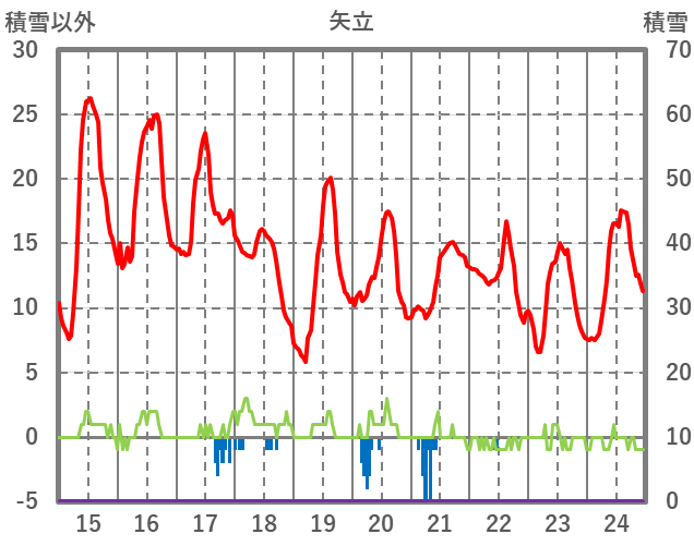 | 日 | 時 | 気温 | 降水 | 風向/風速 | 日照 | 積雪 | 降雪 |