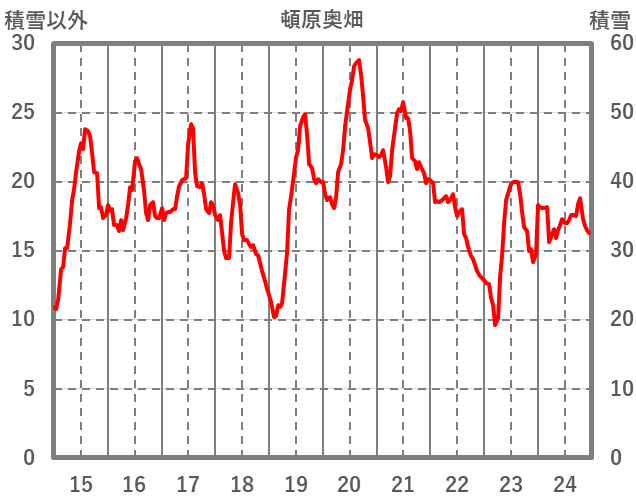 | 日 | 時 | 気温 | 降水 | 風向/風速 | 日照 | 積雪 | 降雪 |