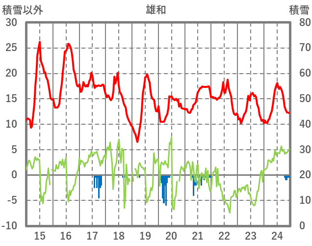 | 日 | 時 | 気温 | 降水 | 風向/風速 | 日照 | 積雪 | 降雪 |