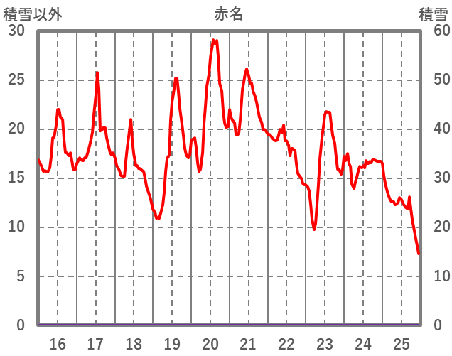 | 日 | 時 | 気温 | 降水 | 風向/風速 | 日照 | 積雪 | 降雪 |