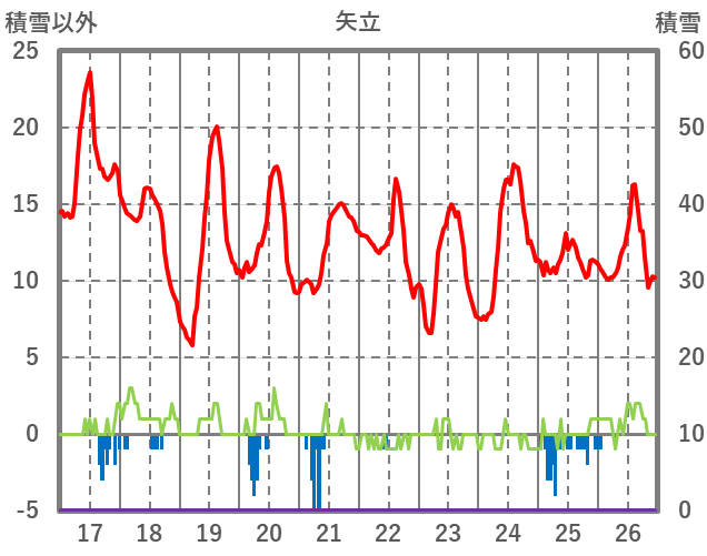 | 日 | 時 | 気温 | 降水 | 風向/風速 | 日照 | 積雪 | 降雪 |