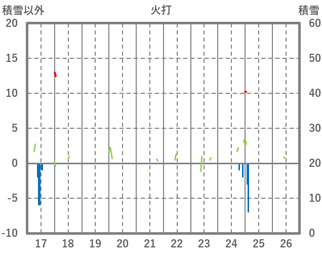 | 日 | 時 | 気温 | 降水 | 風向/風速 | 日照 | 積雪 | 降雪 |