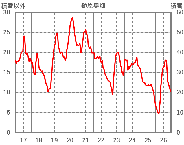 | 日 | 時 | 気温 | 降水 | 風向/風速 | 日照 | 積雪 | 降雪 |