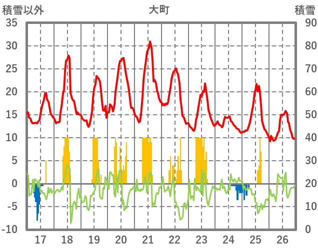 | 日 | 時 | 気温 | 降水 | 風向/風速 | 日照 | 積雪 | 降雪 |