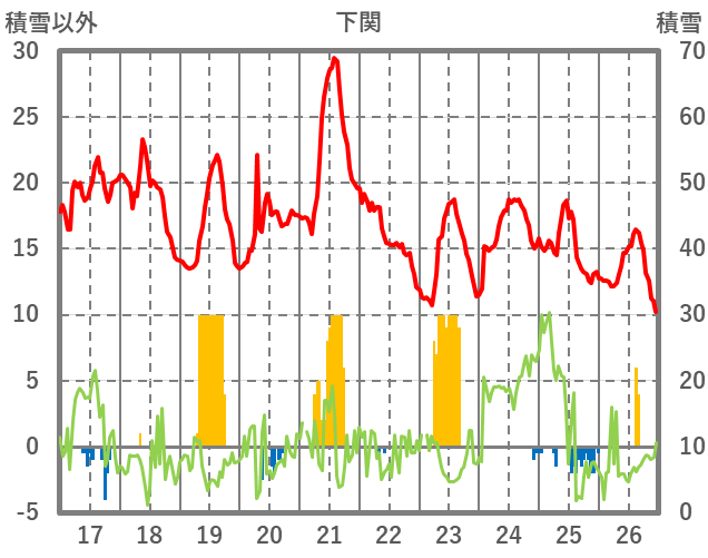 | 日 | 時 | 気温 | 降水 | 風向/風速 | 日照 | 積雪 | 降雪 |