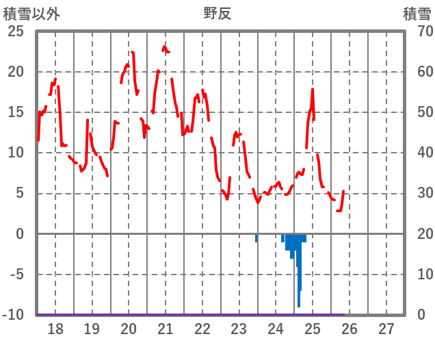 | 日 | 時 | 気温 | 降水 | 風向/風速 | 日照 | 積雪 | 降雪 |