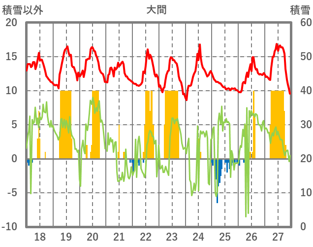 | 日 | 時 | 気温 | 降水 | 風向/風速 | 日照 | 積雪 | 降雪 |