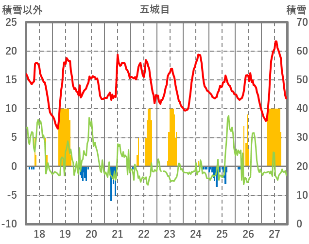 | 日 | 時 | 気温 | 降水 | 風向/風速 | 日照 | 積雪 | 降雪 |