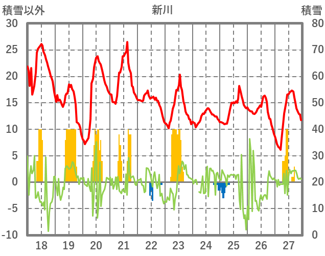 | 日 | 時 | 気温 | 降水 | 風向/風速 | 日照 | 積雪 | 降雪 |