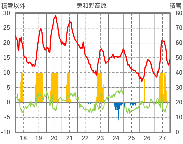 | 日 | 時 | 気温 | 降水 | 風向/風速 | 日照 | 積雪 | 降雪 |